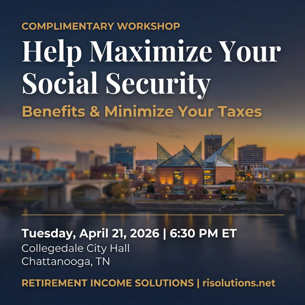 The information provided here in is for educational purposes only and does not constitute an offer to sell or a solicitation of an offer to buy any securities, investments, investment strategies, or investment advice relating to securities, nor is the information a representation that any security is a suitable or appropriate investment for any person. In addition, please consider the appropriateness of the advice having regard to your own objectives, financial situation, and needs. This presentation does not constitute legal or tax advice. Participants should not act or refrain from acting based on the content of this presentation without seeking appropriate professional advice specific to their individual situation. All investment returns are hypothetical, and where quoted, past performance is not indicative of future performance. Sound Income Strategies, LLC does not create this document nor represent or warrant that the contents of this document are suitable for you from a compliance, regulatory, legal or any other perspective. We shall have no responsibility for your use or non-use of the document or any portion thereof. Investment Advisory Services offered through Sound Income Strategies, LLC, an SEC-Registered Investment Advisory Firm. Retirement Income Solutions LLC and Sound Income Strategies, LLC are not associated entities. Retirement Income Solutions LLC is a franchisee of Retirement Income Source, LLC. Retirement Income Source, LLC and Sound Income Strategies, LLC are associated entities.